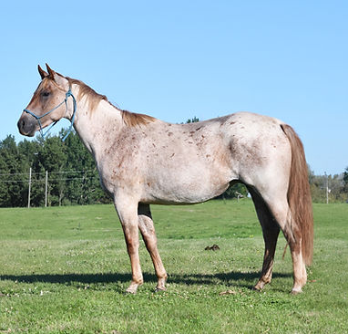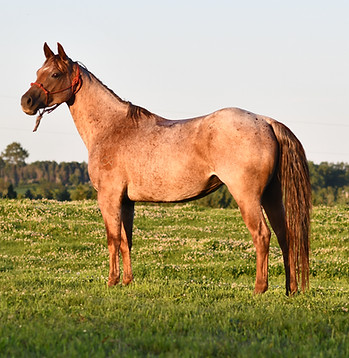 Beautiful producing daughter of RC. She had a gorgeous blue roan stallion by Skye in 2024. Unfortunately we lost him to a respiratory illness in August. Bred back the same way for 2025.